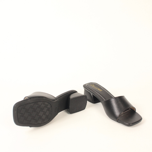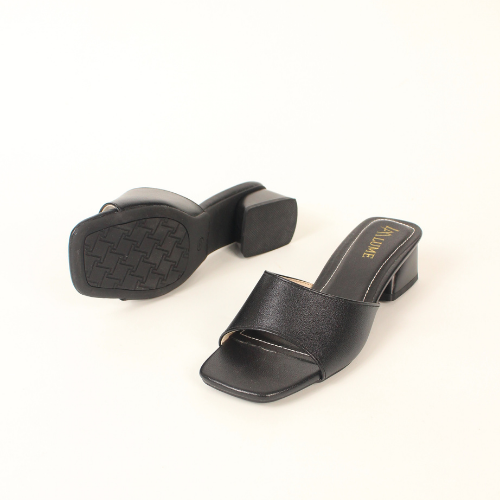 Dép quai da, mũi hở màu đen gót cao 3cm