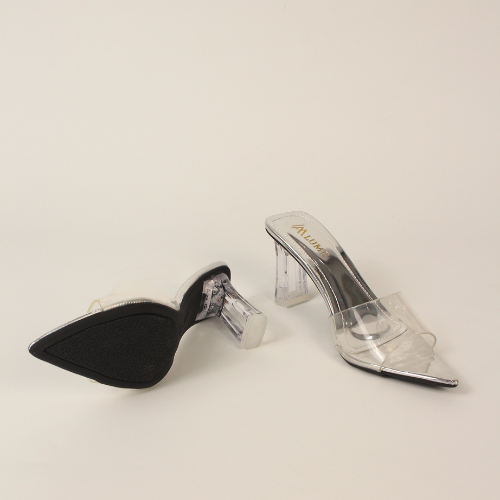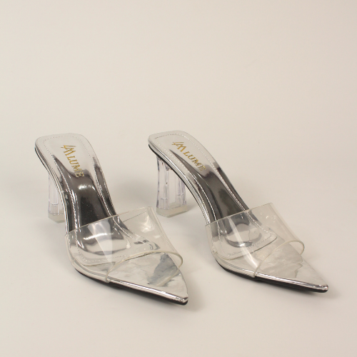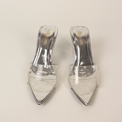 Dép quai trong, mũi nhọn màu bạc cao 7cm