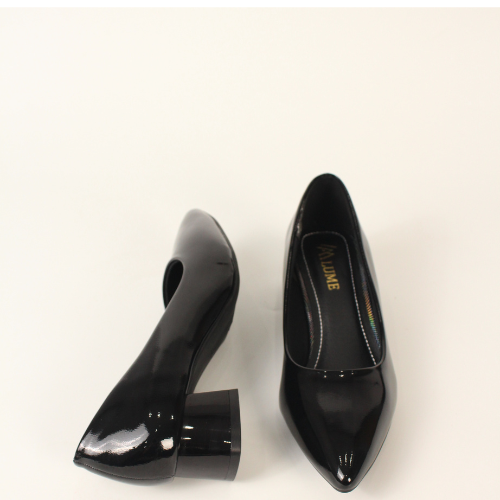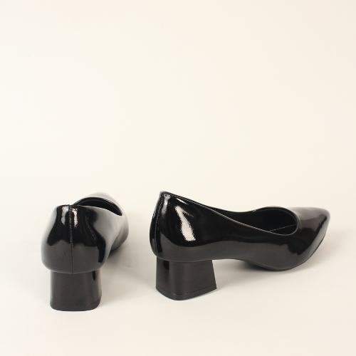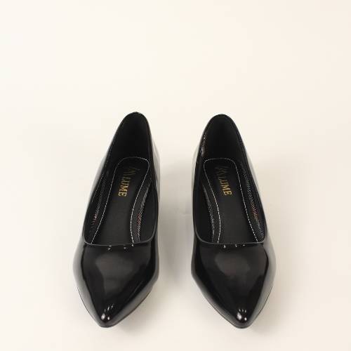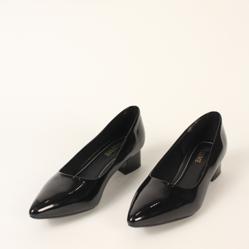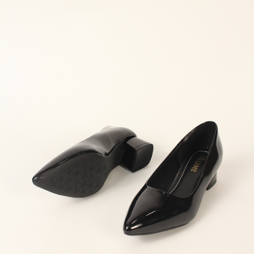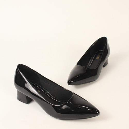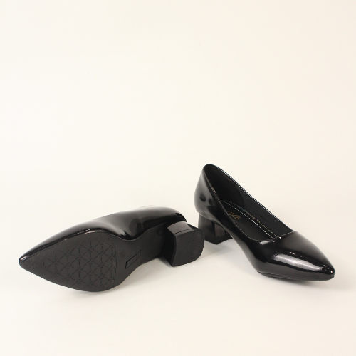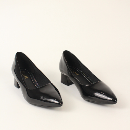 Giày cao gót mũi nhọn, da bóng màu đen cao 3cm