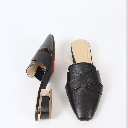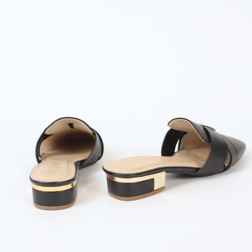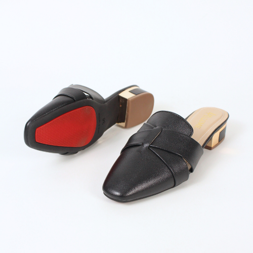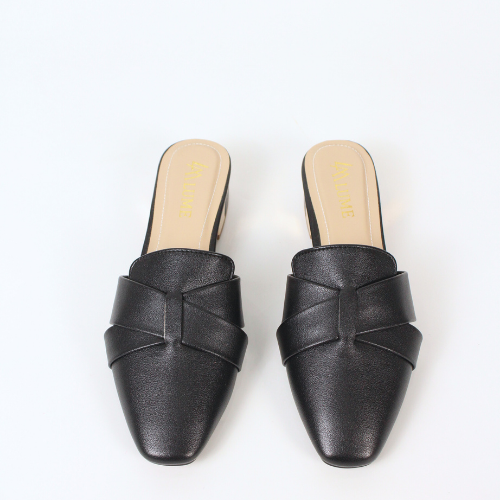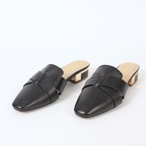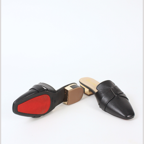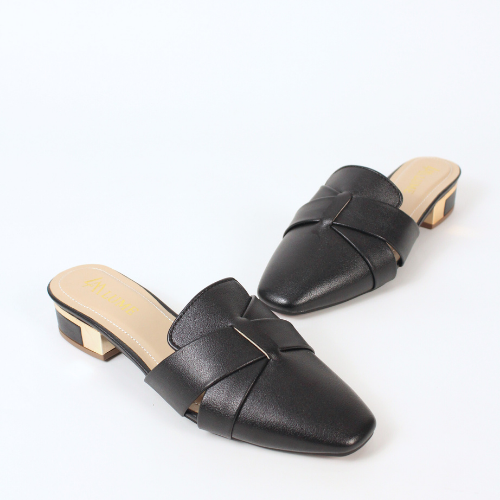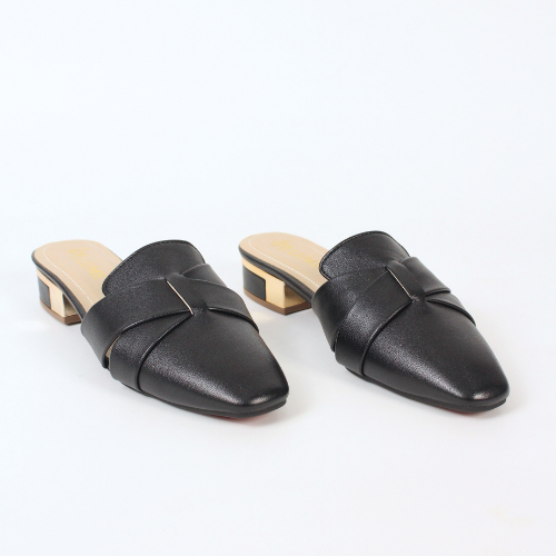 Sục quai chéo vuông đen, mũi tròn cao 2 cm