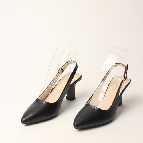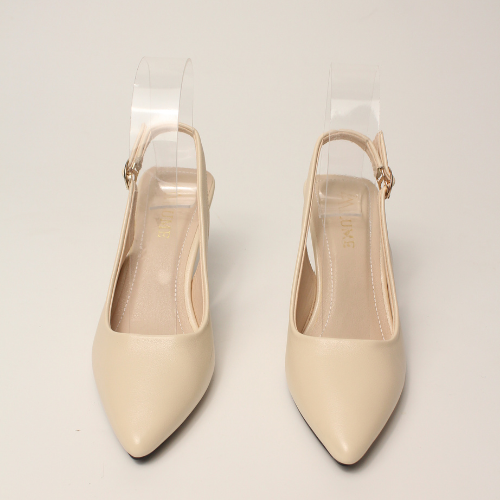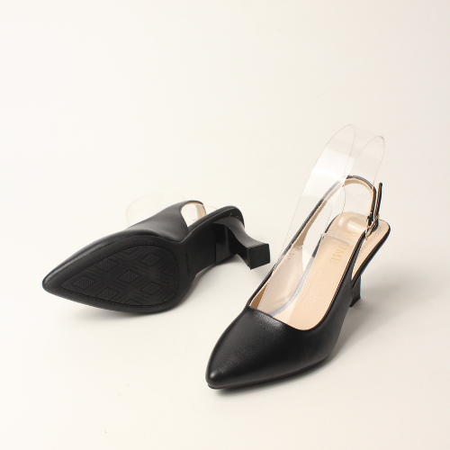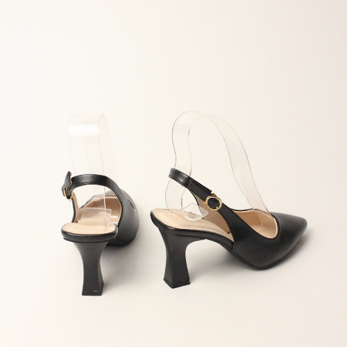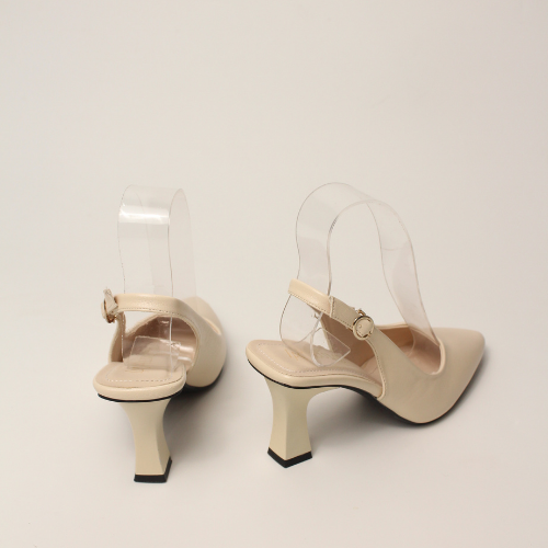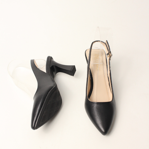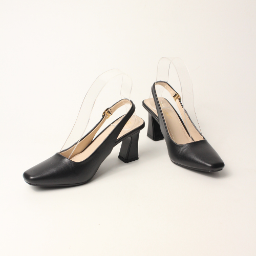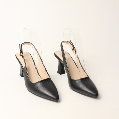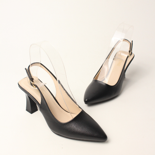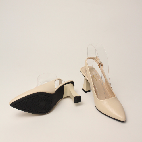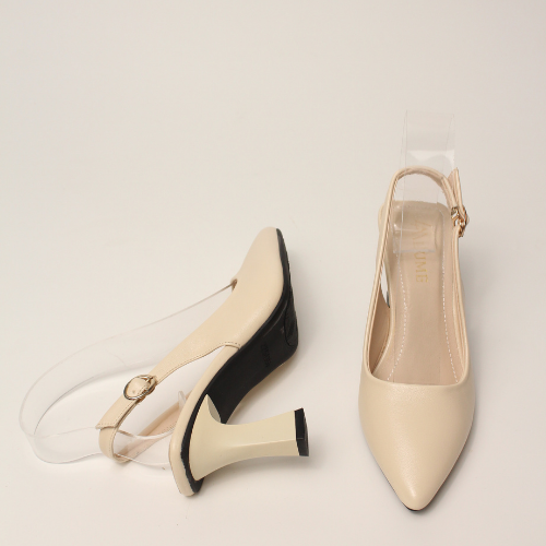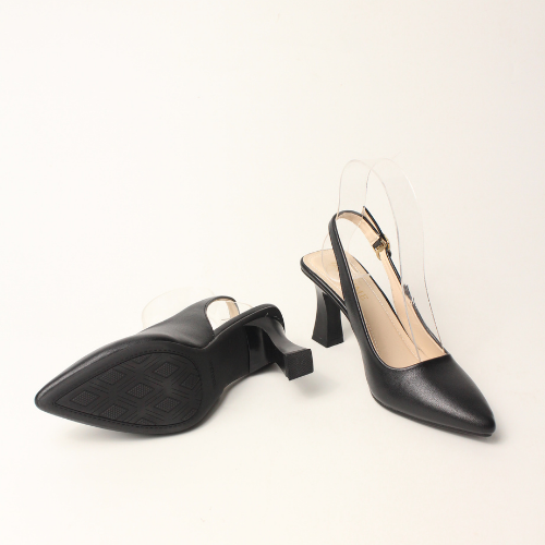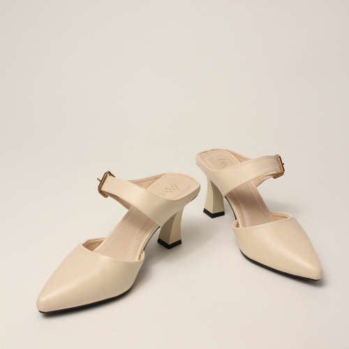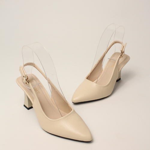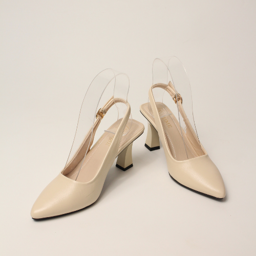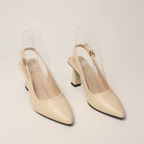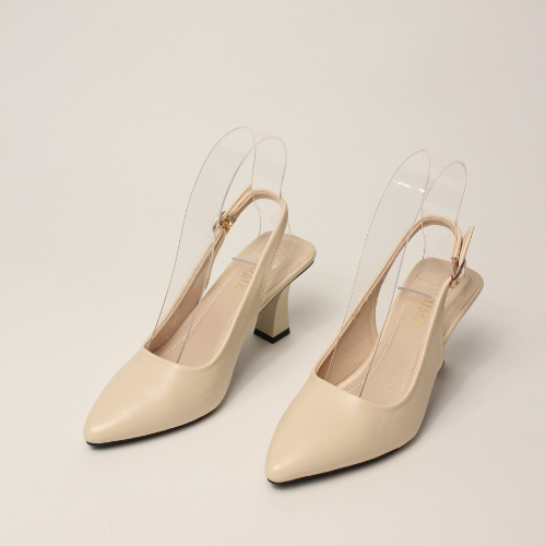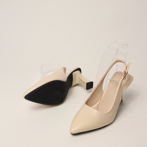 Sục quai HẬU cao gót nữ, mũi NHỌN, màu ĐEN và KEM Lume 12 da PU cao cấp, đế cao su non chống trơn trượt, gót cao 5cm SHNK