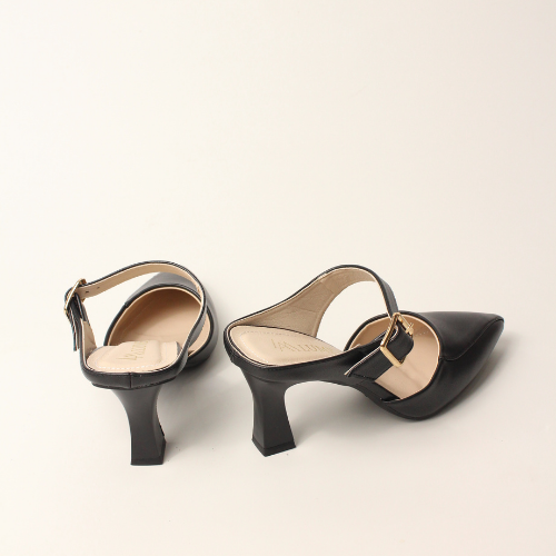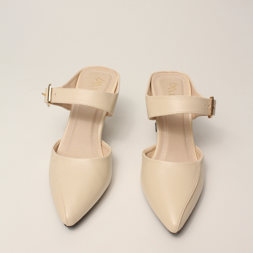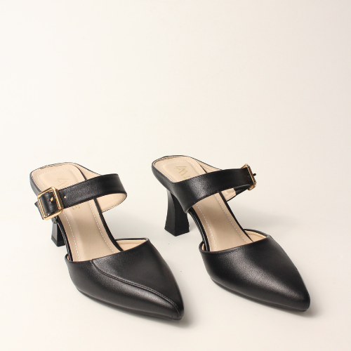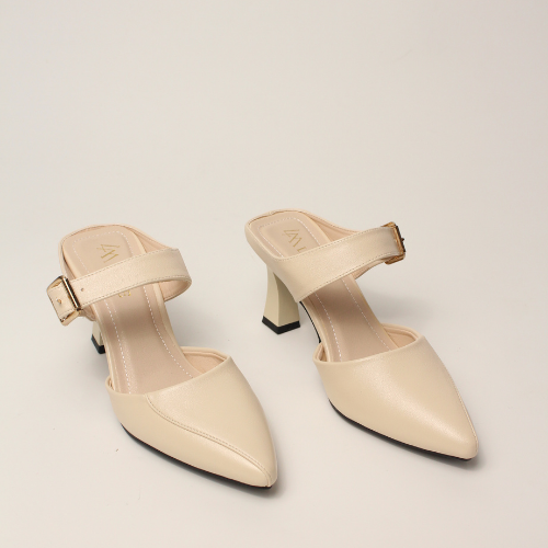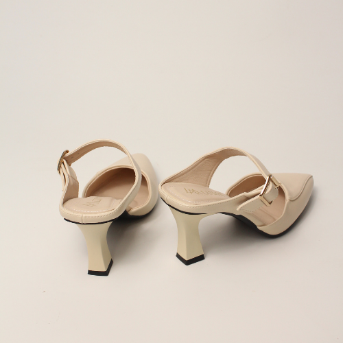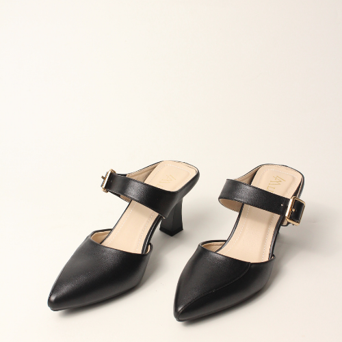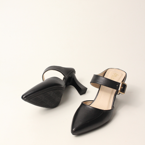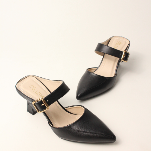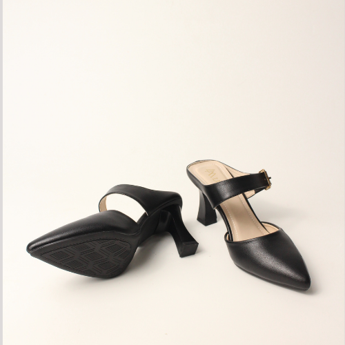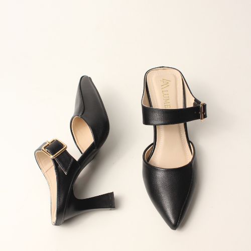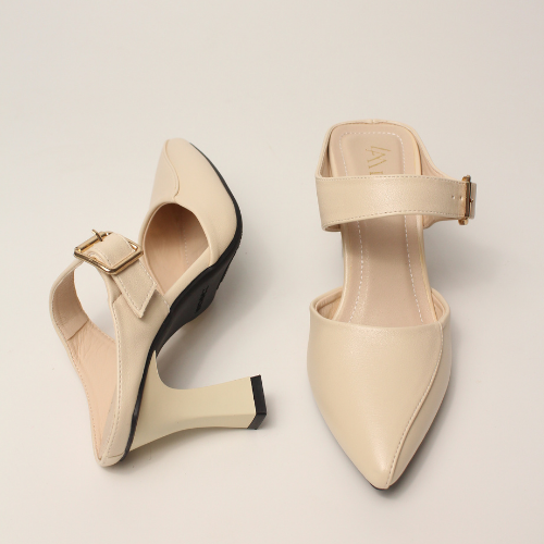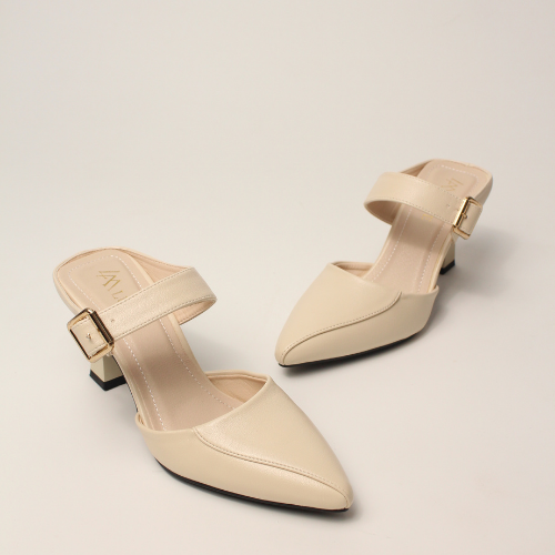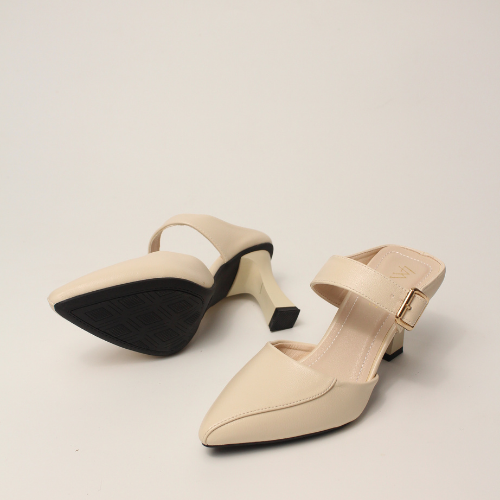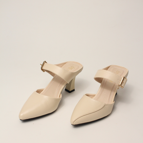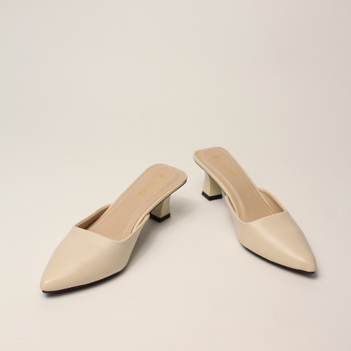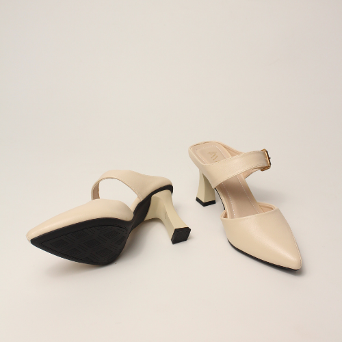 Sục quai NGANG cao gót nữ, mũi NHỌN, màu ĐEN và KEM Lume da PU cao cấp, đế cao su TPU chống trơn trượt, gót cao 5cm SQNNĐ