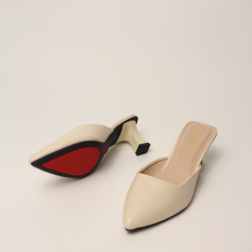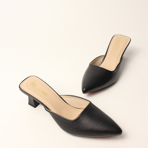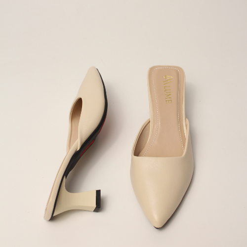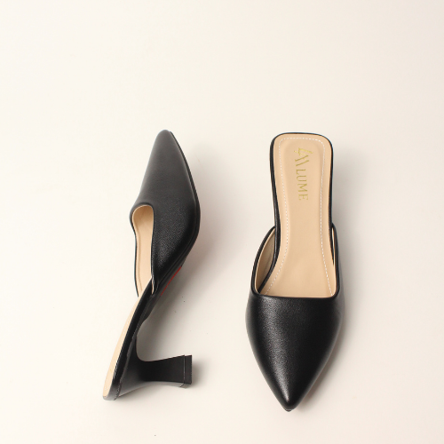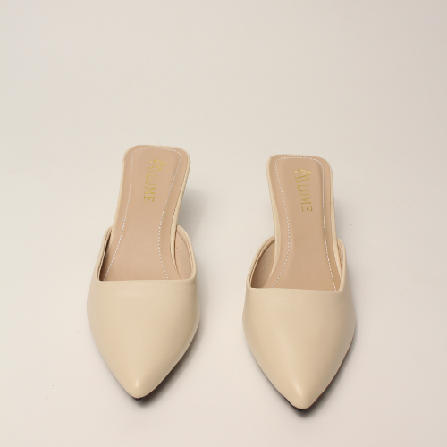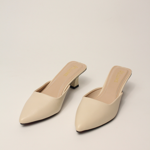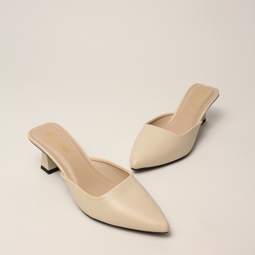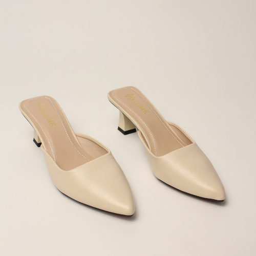 Sục nữ trơn mũi NHỌN – màu KEM và ĐEN Lume 02 da PU cao cấp, đế cao su non chống trơn trượt, đế cao 3cm